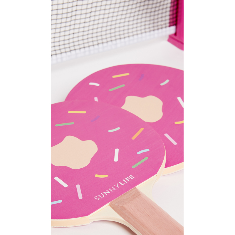 这款甜甜圈图案 SunnyLife 乒乓球套装采用便携款式设计。